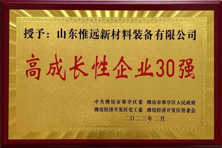 2023年2月,寒亭区委经济工作会议暨全区高质量发展大会召开,会上,区领导戴向波宣读了《关于2022年度寒亭区(经济区)高质量发展综合绩效考核先进单位和先进个人的通报》,为突出贡献企业家、先进单位、先进个人和对地方经济贡献企业50强、高成长性企业30强、社会责任企业30强代表颁了奖。这是公司继2021年度山东省瞪羚企业以后,再次被授予的荣誉称号。根据山东省认定办法,瞪羚、独角兽企业均指已经跨越创业